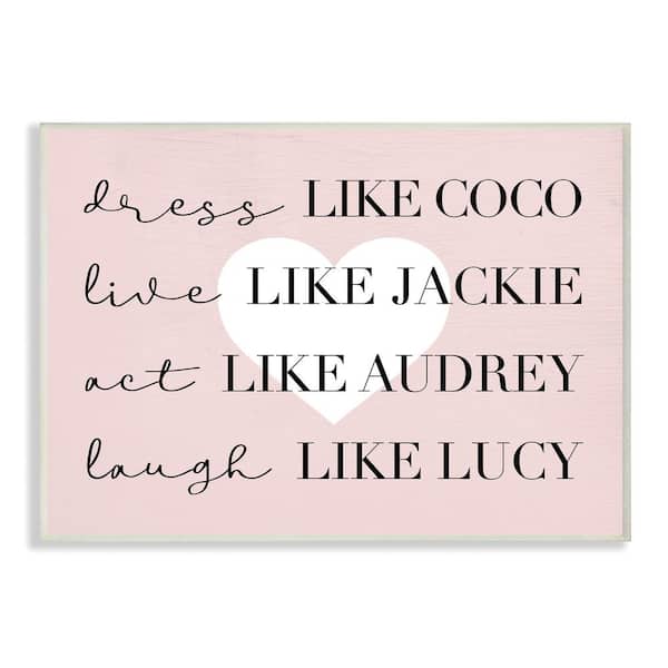 "Be Like Glam Fashion Pink White Heart Word Design" by Daphne Polselli Wood Abstract Wall Art 15 in. x 10 in.