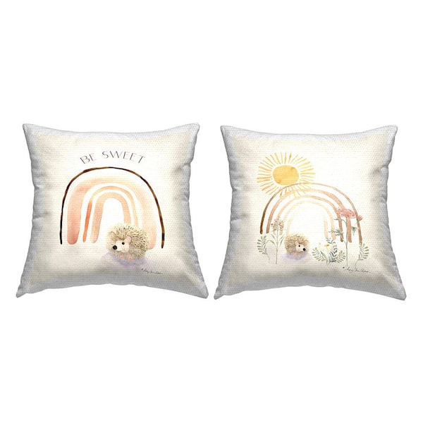 Be Sweet Hedgehog Nature Rainbows Beige Square Outdoor Throw Pillow 2-Pack