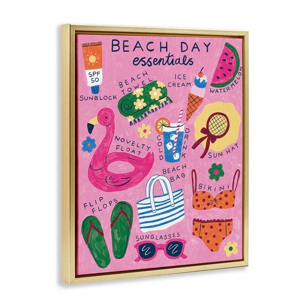 Beach Day Essentials by Lisa Barlow Gold Floater Frame Coastal Graphic Art Print 21 in. x 17 in.