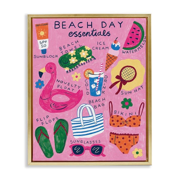 Beach Day Essentials by Lisa Barlow Gold Floater Frame Coastal Graphic Art Print 31 in. x 25 in.