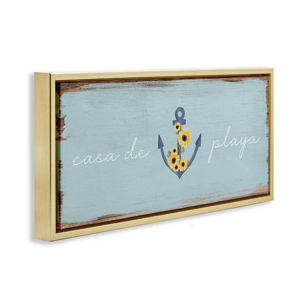 Beach House with Anchor by Lil' Rue Gold Floater Frame Nature Graphic Art Print 14 in. x 31 in.