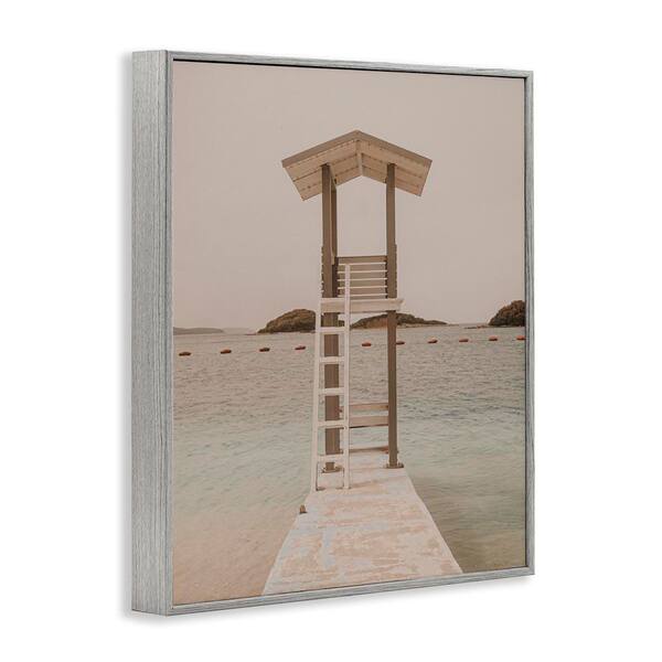 Beach Lifeguard Lookout by LSR Design Studio Gray Framed Coastal Giclee Art Print 30 in. x 24 in.