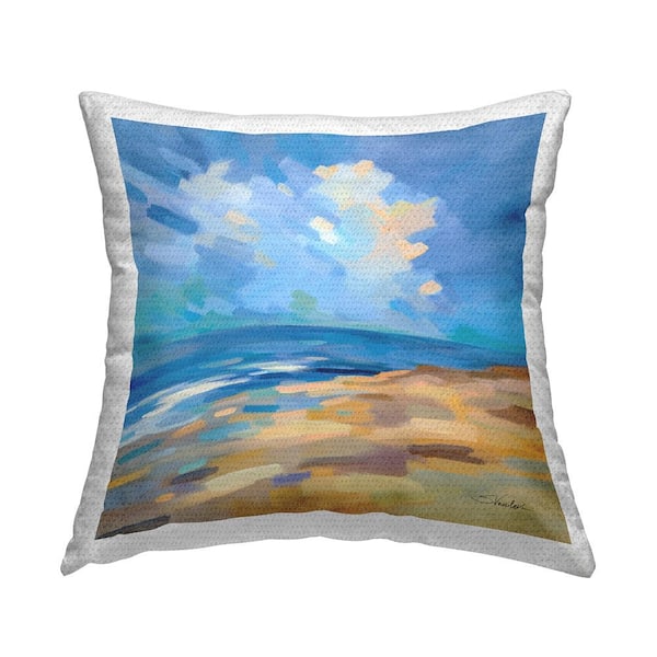 Beach Shore Abstract Landscape Blue Square Outdoor Throw Pillow