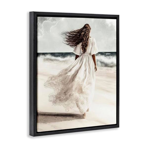 Beach Stroll Sea Spray by Incado Black Floater Frame People Graphic Art Print 31 in. x 25 in.