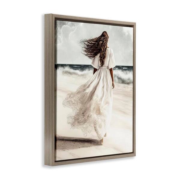 Beach Stroll Sea Spray by Incado Brown Floater Frame People Graphic Art Print 21 in. x 17 in.