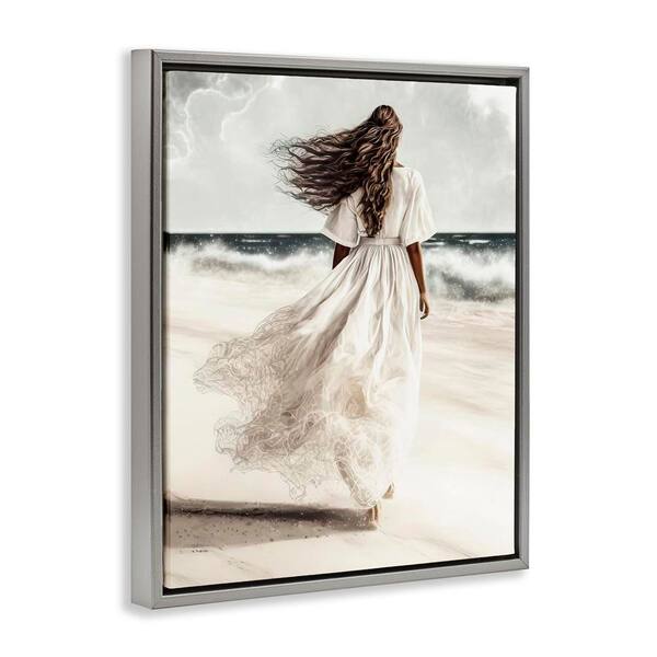 Beach Stroll Sea Spray by Incado Gray Floater Frame People Graphic Art Print 31 in. x 25 in.