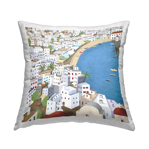Beach Town Marina Dock Boats Blue Square Outdoor Throw Pillow