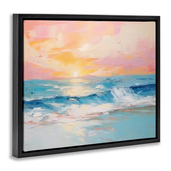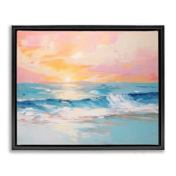 Beach Waves Bright Sunset by Arlington Prints Black Floater Frame Coastal Graphic Art Print 17 in. x 21 in.