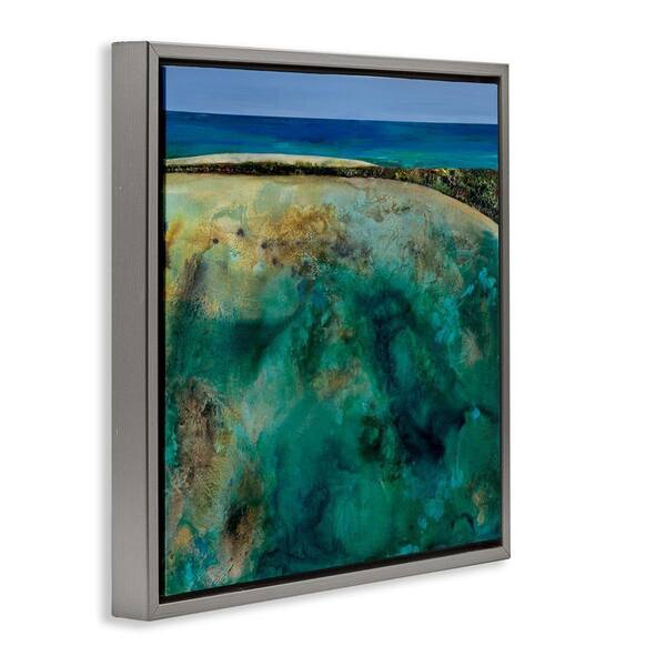 Beachy Maritime Landscape by Ngo Gray Floater Frame Abstract Graphic Art Print 18 in. x 18 in.