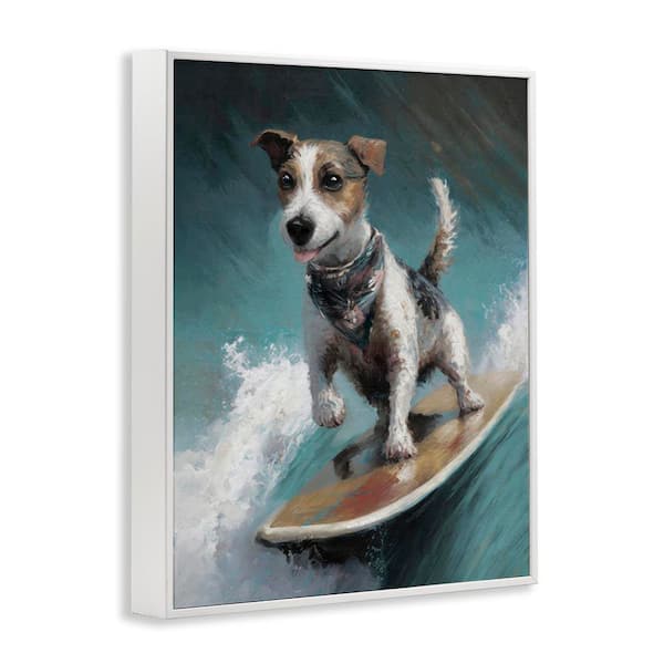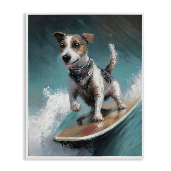Beachy Surfer Dog by Svetlana Aleynikova White Framed Animal Giclee Art Print 14 in. x 11 in.
