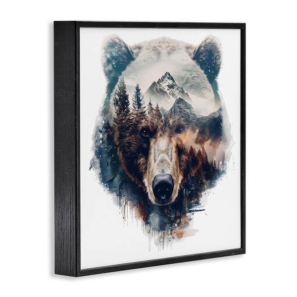 Bear Head Silhouette by LSR Design Studio Black Framed Animal Giclee Art Print 17 in. x 17 in.