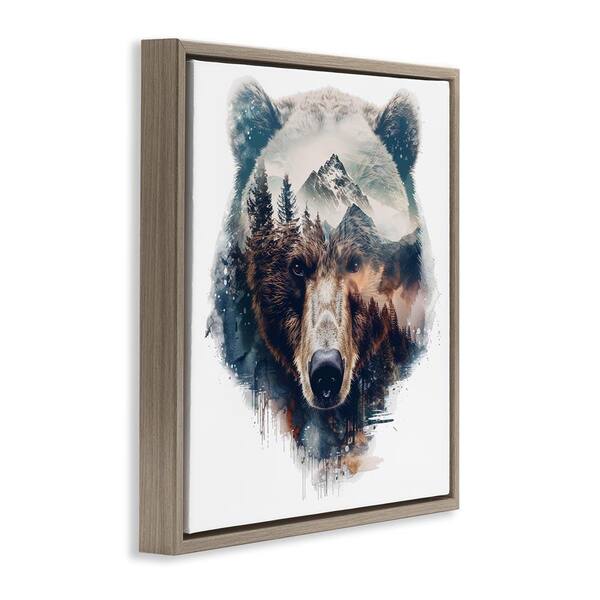 Bear Head Silhouette by LSR Design Studio Brown Floater Frame Animal Graphic Art Print 18 in. x 18 in.