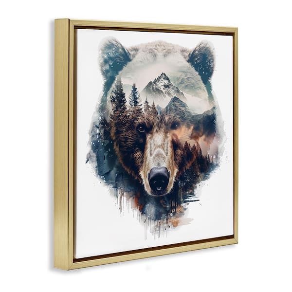 Bear Head Silhouette by LSR Design Studio Gold Floater Frame Animal Graphic Art Print 18 in. x 18 in.