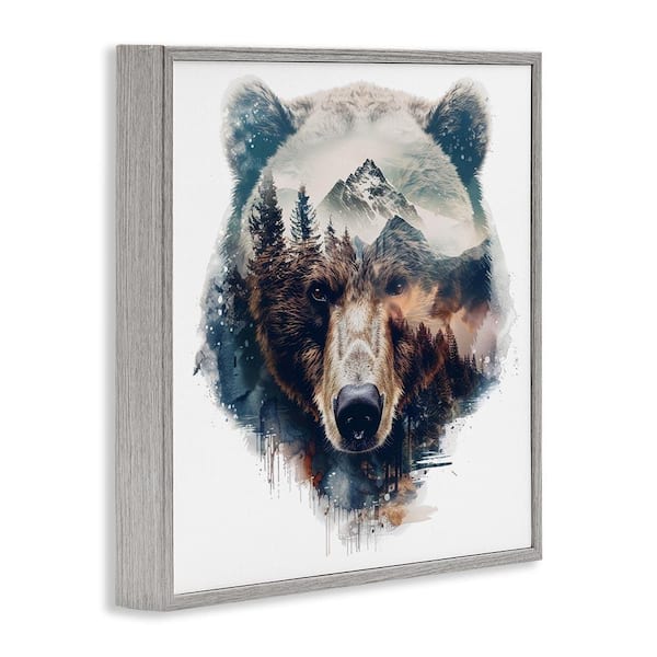 Bear Head Silhouette by LSR Design Studio Gray Framed Animal Giclee Art Print 17 in. x 17 in.