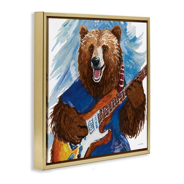 Bear Playing Guitar by Seven Trees Design Gold Floater Frame Animal Graphic Art Print 18 in. x 18 in.