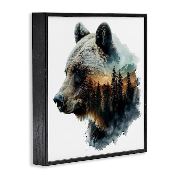 Bear Woodland Silhouette by LSR Design Studio Black Framed Animal Giclee Art Print 24 in. x 24 in.