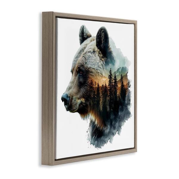 Bear Woodland Silhouette by LSR Design Studio Brown Floater Frame Animal Graphic Art Print 25 in. x 25 in.