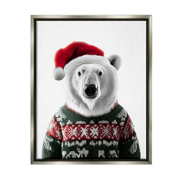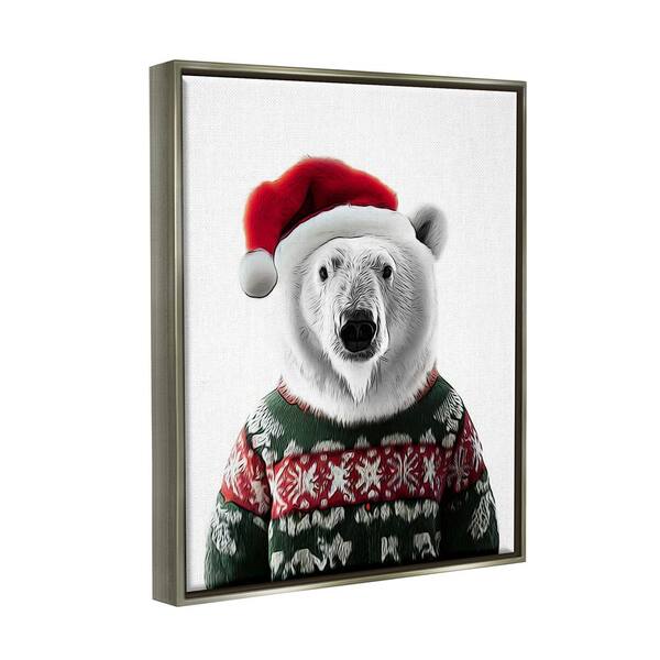 Bear in Holiday Sweater by Annalisa Latella 1 Piece Floater Frame Graphic Print Animal Poster Art Print 21 in. x 17 in.