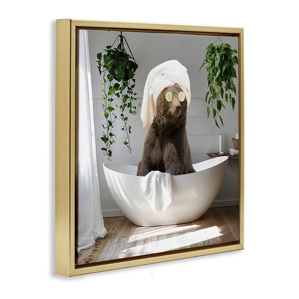 Bear in Refreshing Spa Bath by CAD Designs Gray Floater Frame Animal Graphic Art Print 25 in. x 25 in.