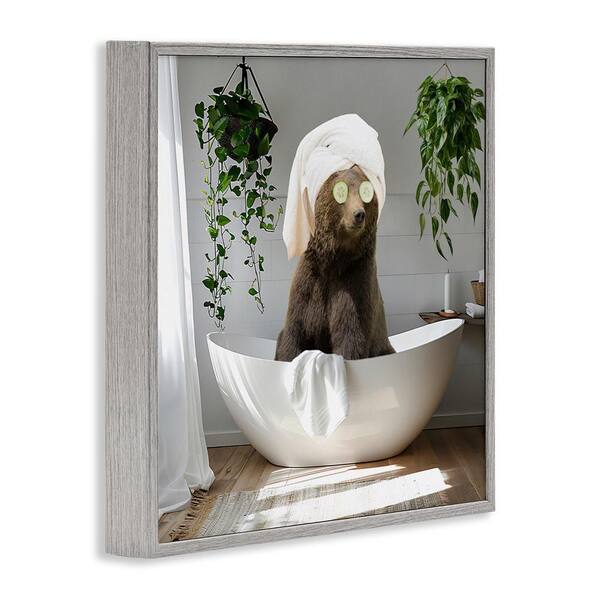 Bear in Refreshing Spa Bath by CAD Designs Gray Framed Animal Giclee Art Print 17 in. x 17 in.