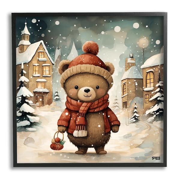 Bear in Snowy Winter Village by RB 1-Piece Framed Graphic Print Animal Poster Art Print 12 in. x 12 in.