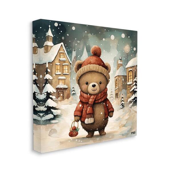 Bear in Snowy Winter Village by RB 1-Piece Unframed Graphic Print Animal Poster Art Print 24 in. x 24 in.