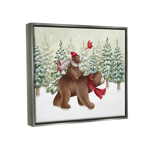Bears in Snowy Scene by Emma Leach 1-Piece Floater Frame Graphic Print Animal Poster Art Print 21 in. x 17 in.