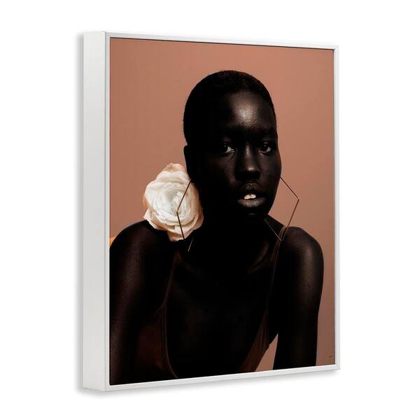 Beautiful Woman and Rose by Oladimeji Odunsi White Framed People Giclee Art Print 30 in. x 24 in.
