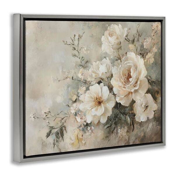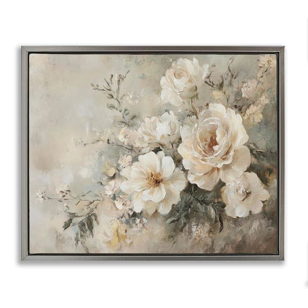 Beige Faded Florals by Petal Prints Design Gray Floater Frame Nature Graphic Art Print 17 in. x 21 in.