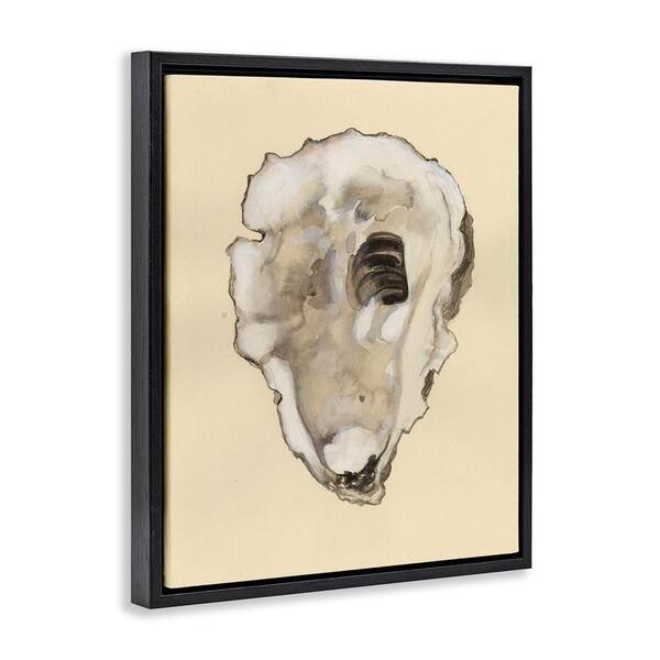 Beige Oyster Shape by Michael Willett Black Floater Frame Coastal Graphic Art Print 31 in. x 25 in.