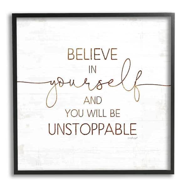 Believe In Be Unstoppable Phrase Rustic Typography By Jennifer Pugh Framed Print Abstract Texturized Art 17 in. x 17 in.
