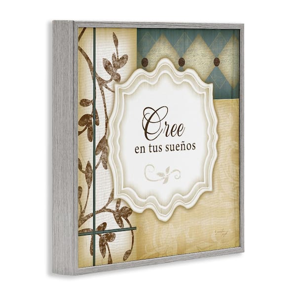 Believe in Dreams by Jennifer Pugh Gray Framed Typography Giclee Art Print 12 in. x 12 in.