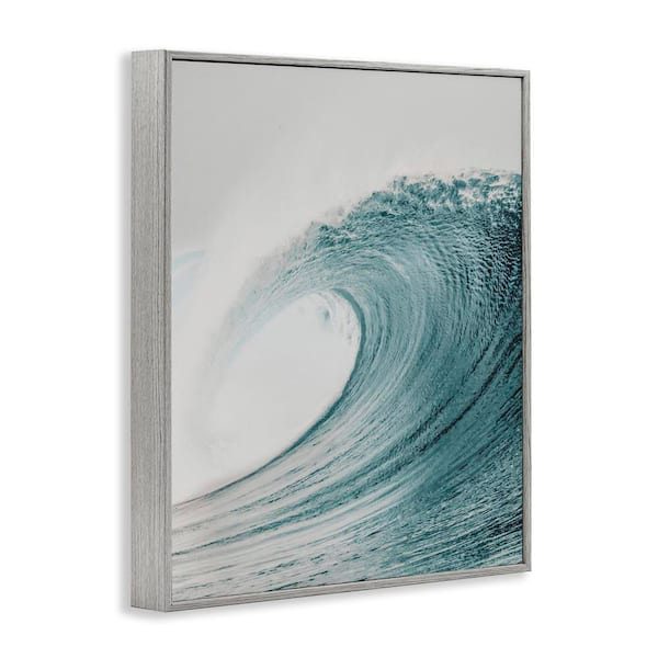 Big Curled Sea Wave by LSR Design Studio Gray Framed Coastal Giclee Art Print 14 in. x 11 in.