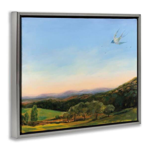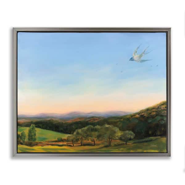 Bird Over Fable Farm by Sue Schlabach Gray Floater Frame Nature Graphic Art Print 25 in. x 31 in.