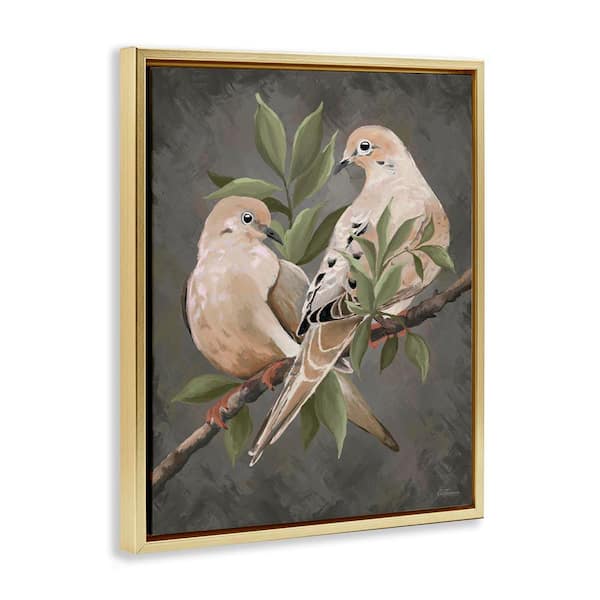 Bird Pair on Grey by Cat Thurman Designs Gold Floater Frame Animal Graphic Art Print 31 in. x 25 in.