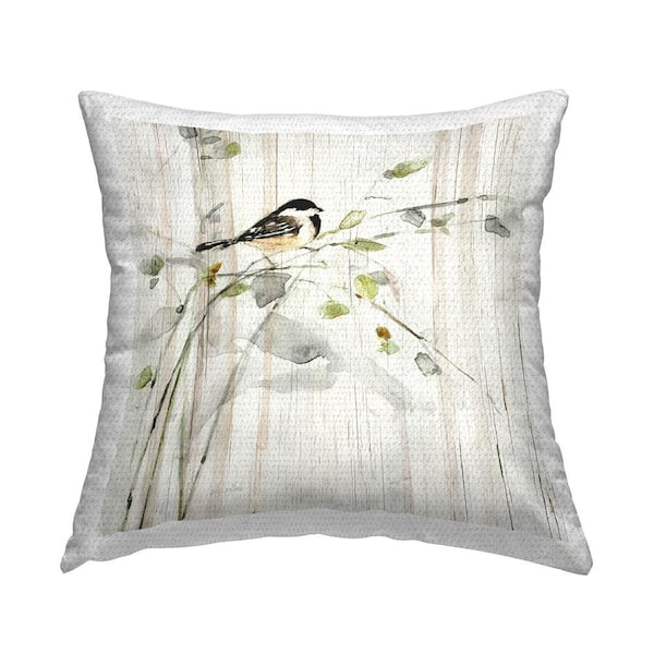 Bird Perched Country Herb Blooms Beige Square Outdoor Throw Pillow