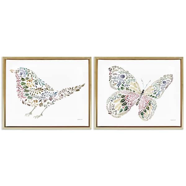 Bird and Butterfly From Nature by Danhui Nai 2-Pieces Gold Floater Frame Animal Graphic Art Print 25 in. x 31 in.