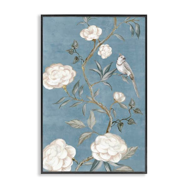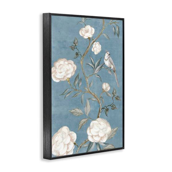Bird on Traditional florals by Alex Black Black framed Nature Giclee Art Print 18 in. x 12 in.