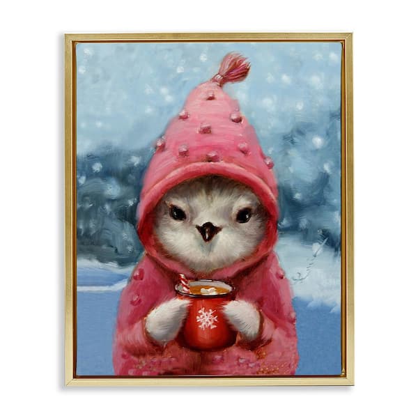 Bird with Winter Cocoa by Lucia Heffernan 1 Piece Floater Frame Graphic Print Animal Poster Art Print 31 in. x 25 in.
