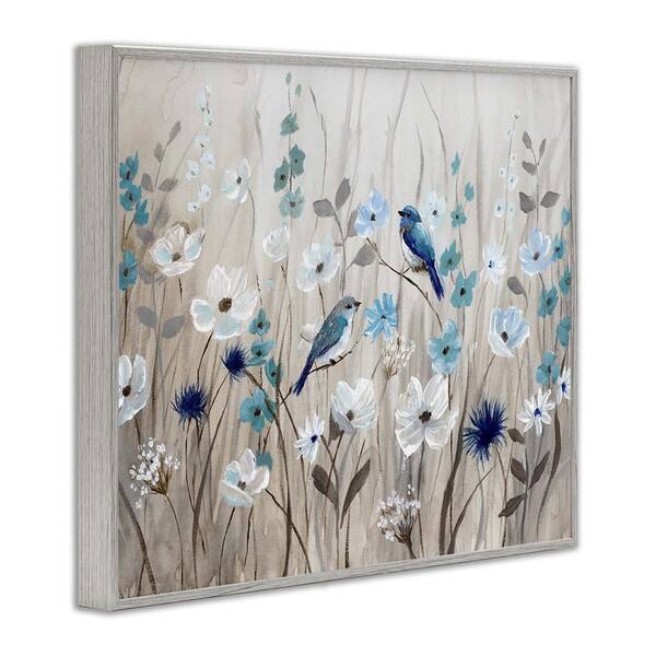 Birds Floral Meadow Blossoms by Nan 1-Piece Gray Framed Nature Giclee Art Print 30 in. x 24 in.