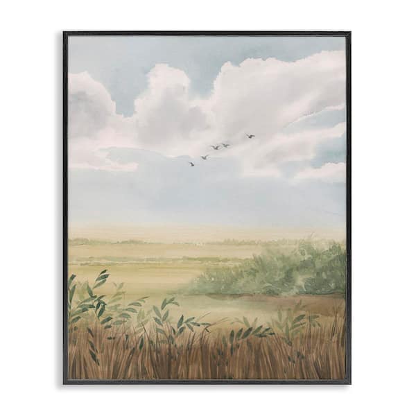 Birds Flying Over Countryside by Grace Popp Black Framed Nature Giclee Art Print 14 in. x 11 in.