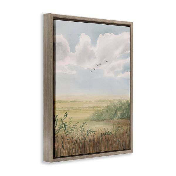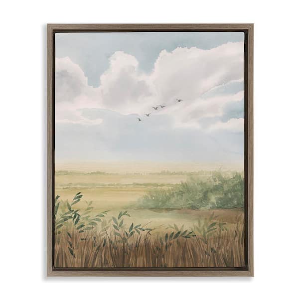 Birds Flying over Countryside by Grace Popp Brown Floater Frame Nature Graphic Art Print 31 in. x 25 in.
