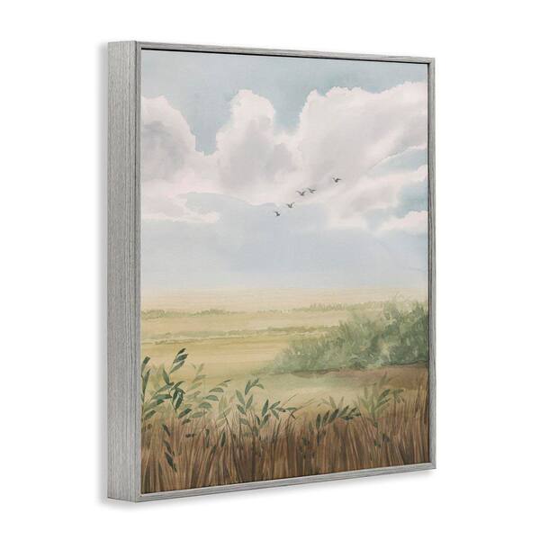 Birds Flying over Countryside by Grace Popp Gray Framed Nature Giclee Art Print 30 in. x 24 in.