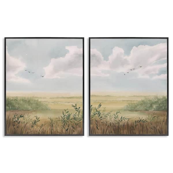 Birds over Country Pastures by Grace Popp 2 Pieces Black Framed Nature Giclee Art Print 30 in. x 24 in.