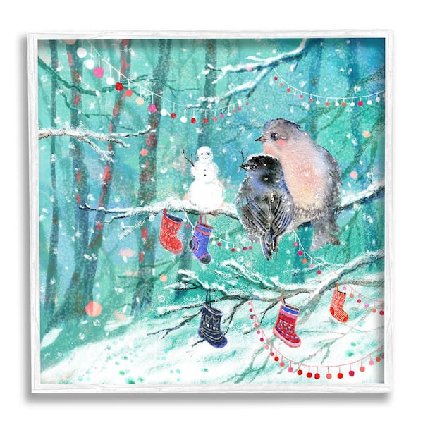 Birds with Winter Stockings by Verbrugge Watercolor 1 Piece Framed Graphic Print Animal Poster Art Print 17 in. x 17 in.
