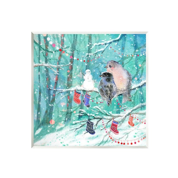Birds with Winter Stockings by Verbrugge Watercolor 1 Piece Unframed GraphicPrint Animal Poster ArtPrint 12 in. x 12 in.