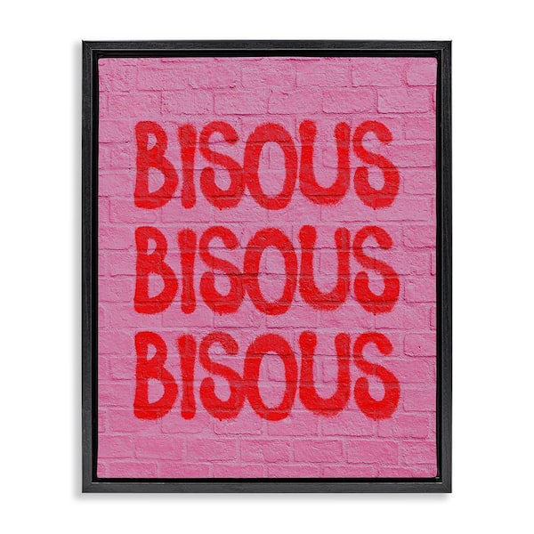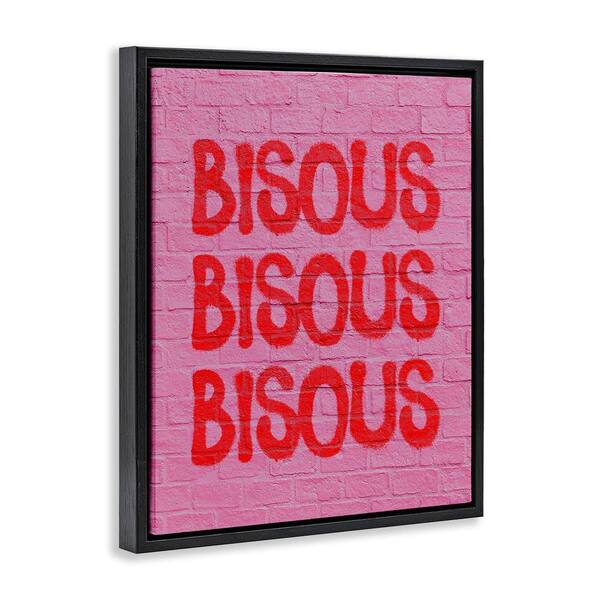 Bisous on Brick Pattern by House of Lulu Black Floater Frame Typography Graphic Art Print 21 in. x 17 in.