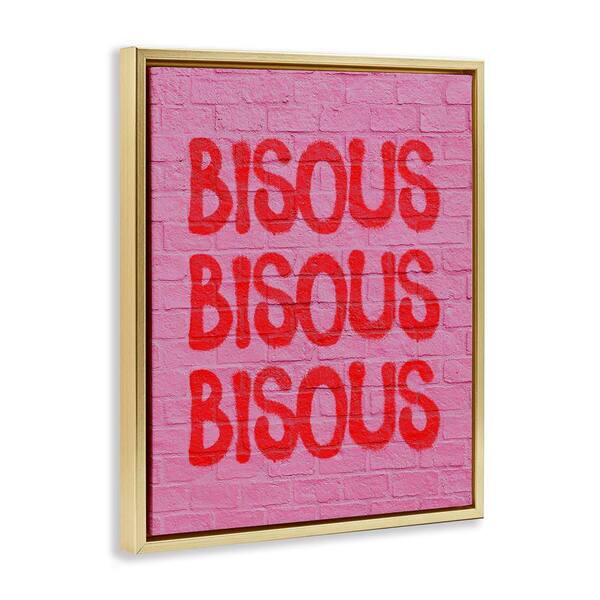 Bisous on Brick Pattern by House of Lulu Gold Floater Frame Typography Graphic Art Print 21 in. x 17 in.
