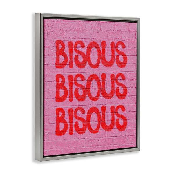 Bisous on Brick Pattern by House of Lulu Gray Floater Frame Typography Graphic Art Print 21 in. x 17 in.