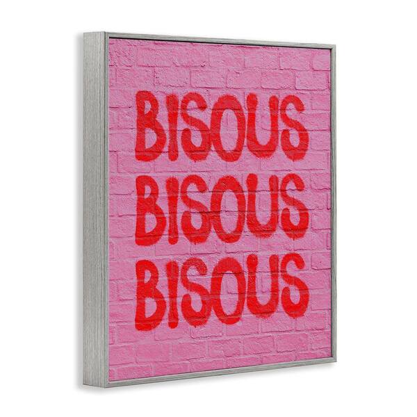 Bisous on Brick Pattern by House of Lulu Gray Framed Typography Giclee Art Print 20 in. x 16 in.